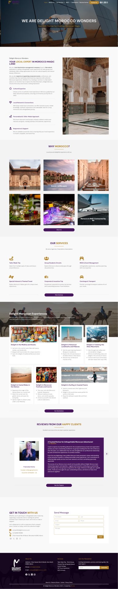 Delight Morocco Wonders is a thriving Destination Management Company that was born out of a shared passion for the enchanting beauty of Morocco and a desire to create unforgettable experiences. Their expertise in tourism and MICE industry and their in-depth knowledge of Morocco became an invaluable resource for the idea of creating their own business. The synergy between their skills and their shared enthusiasm for showcasing the wonders of Morocco led to the inception of Delight Morocco Wonders.